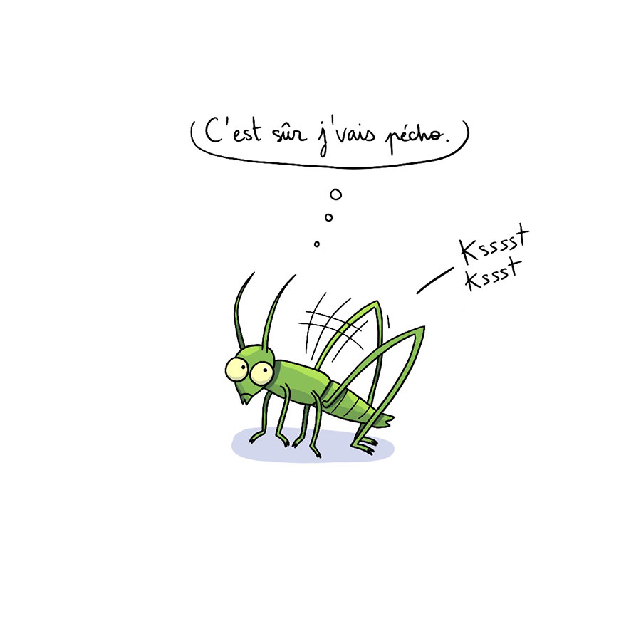 Bonjour bonjour ! Une fois de plus, malheureusement, cette BD est inspirée d’une histoire un peu trop vraie à mon goût, puisque pendant PLUS D’UNE SEMAINE j’ai eu le front couvert de 10 PIQÛRES bien rouges et bien gonflées qui me donnaient l’air d’une ado en crise d’acné (tristesse). Bref, non seulement ce moustique m’a défigurée mais en plus je suis quasi sûre que cela s’est passé exactement comme dépeint ici. Cette bestiole était je pense parfaitement crétine.