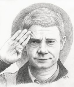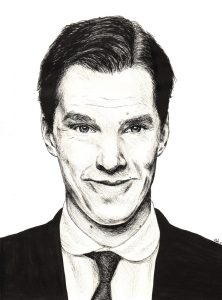 Parmi les visages qui reviennent, le mien est assez récurrent. Au moins, pas de risque de plainte si le dessin est raté ! 😀 On retrouve également souvent Martin Freeman et Benedict Cumberbatch, les deux acteurs de la série Sherlock que j’adore. Les portraits sont réalisés à l’aquarelle, au crayon et à l’encre de Chine le plus souvent.
